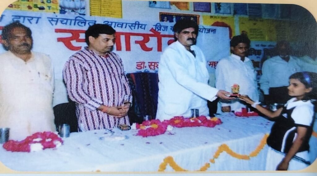 गैर आवासीय ब्रिज कोर्स केन्द्र में विभिन्न कार्यक्रमों में सहभाग करते लाभार्थी बच्चे तथा मार्गदर्शक संस्थान प्रबन्धक डॉ. सुशील चन्द्र त्रिवेदी 'मधुपेश' तथा अतिथिगण।